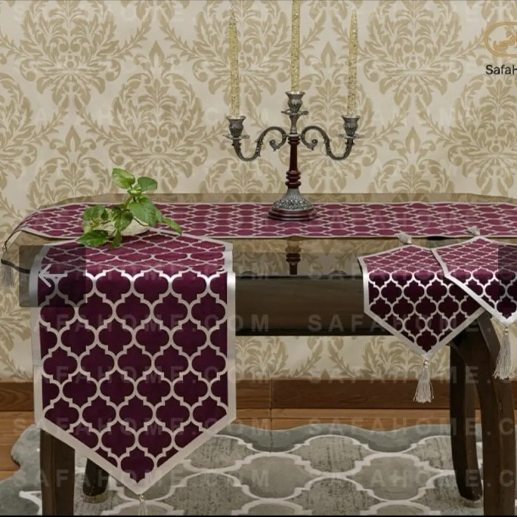 ست رومیزی زیبا و شیک جنس مخمل شامل رومیزی ناهارخوری،جلومبلی و عسلی