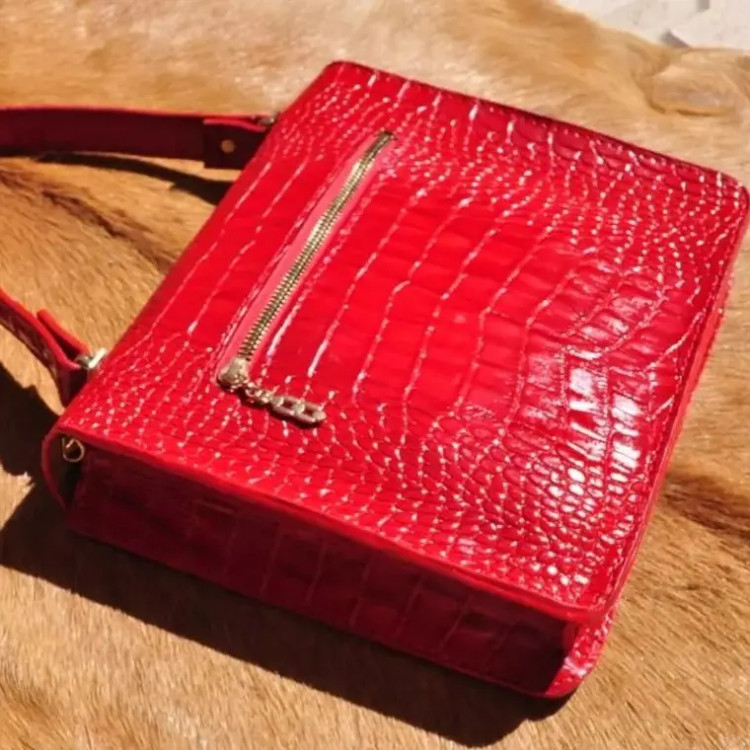 کیف چرم طبیعی دستدوز دستی زیباو شیک و خوشرنگ باچرم طبیعی کروکو