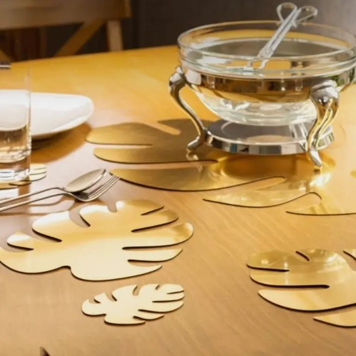 رومیزی زیربشقابی چرم طلایی برگی شکل باکیفیت و ضخیم باطرح زیبا ،سایز آن بنا به سفارش،شما تغییر میکند