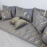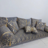 ست شاه نشین و تشک و بالشت سنتی با رکش مخمل و چرم و مخمل طلاکوب