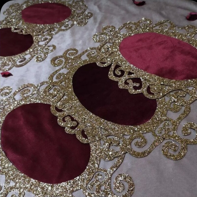 رومیزی مخمل چرم اکلیلی درشت و زیربشقابی مخمل وچرم اکلیلی درشت