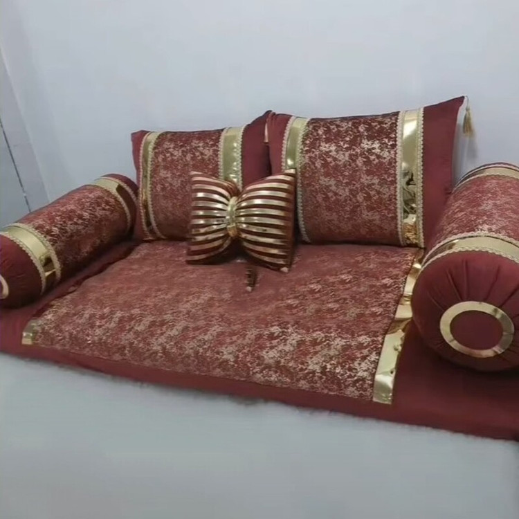 ست شاه نشین و تشک و بالشت سنتی با رکش مخمل و چرم و مخمل طلاکوب شده8تیکه