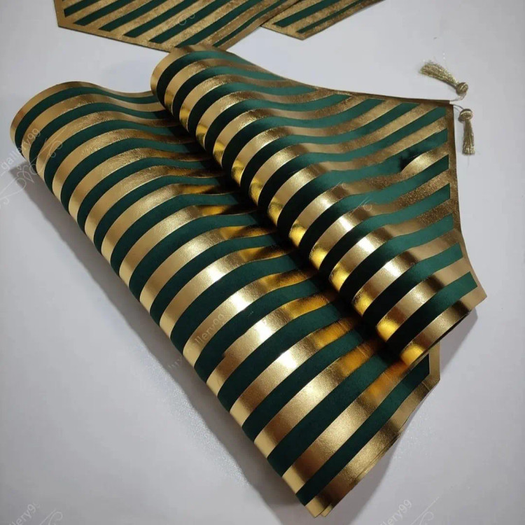 رومیزی ناهارخوری 8نفره و رومیزی ناهارخوری 6نفره و رومیزی و رانر شیک زیبا مخمل و چرم طلایی و نقره ای